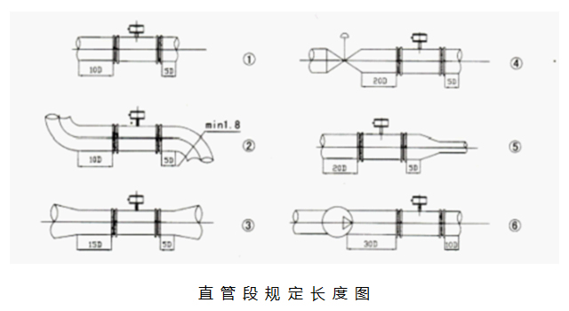 下圖展示了經(jīng)常遇到的幾種情況所要求的直管段。
