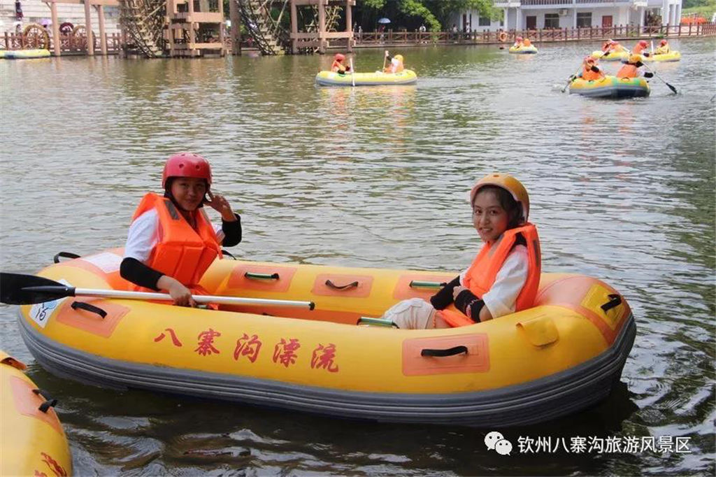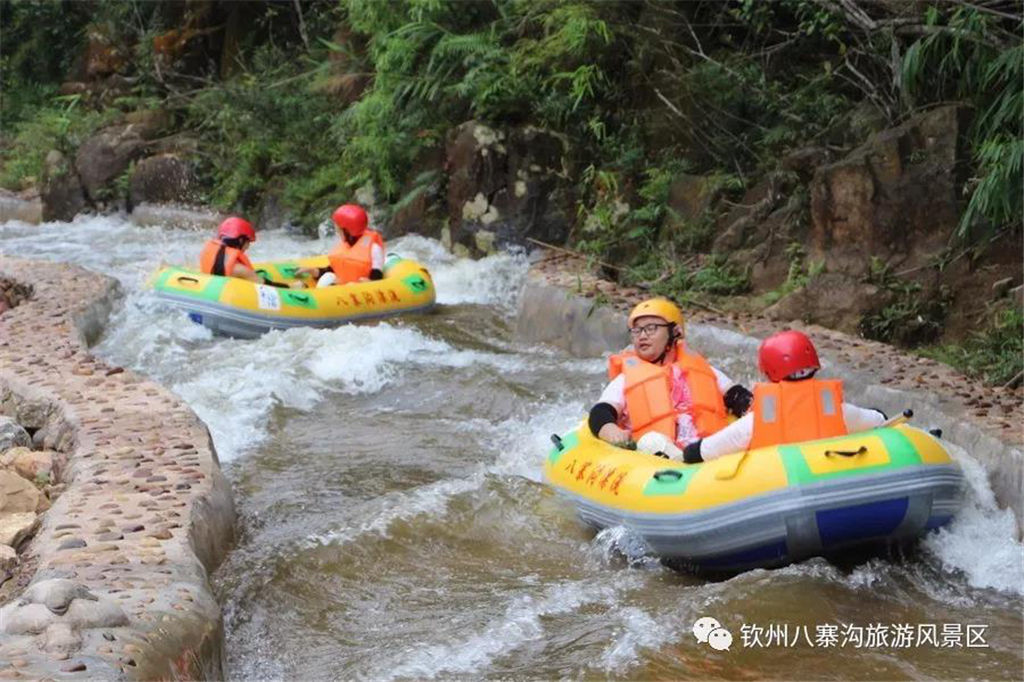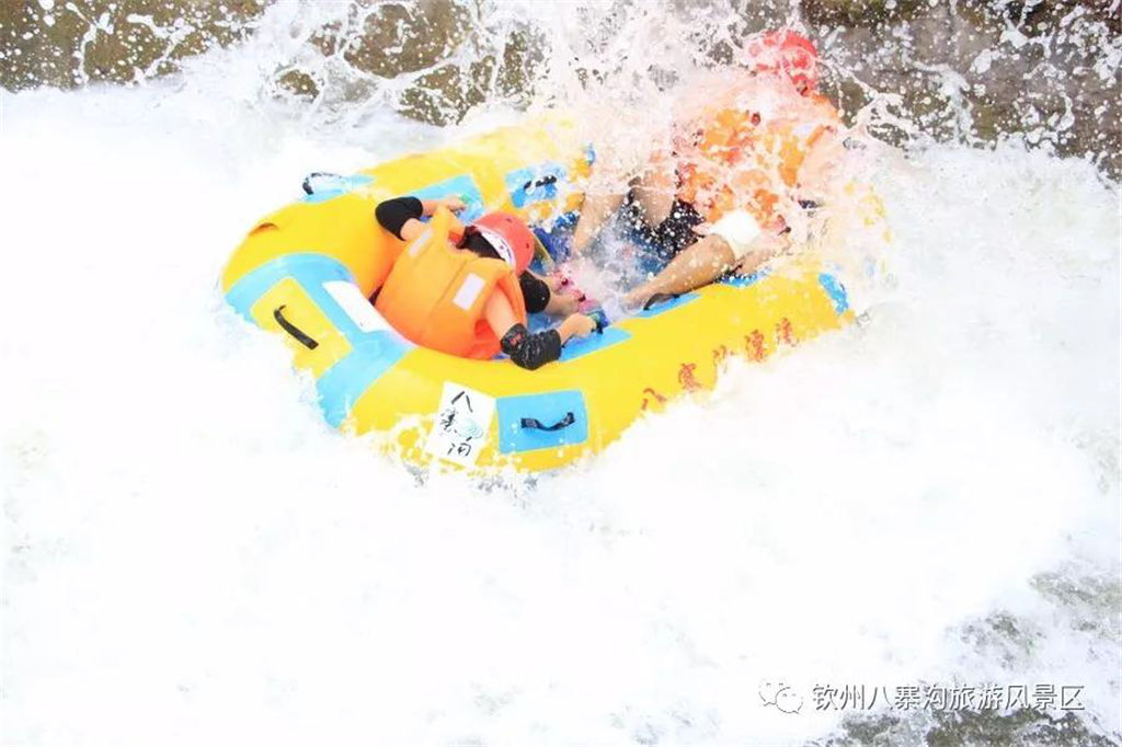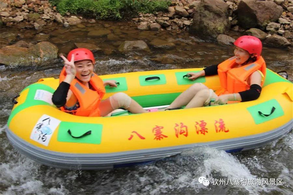 游人乘坐雙人橡皮艇,從清涼的水花中一躍而過,時而輕盈如燕,時而奔騰如虎,一路漂蕩、一路歡叫。