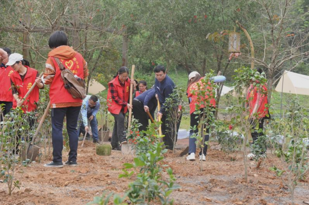 活動(dòng)現(xiàn)場(chǎng),全體人員積極投身于添綠行動(dòng)中,揮鍬鏟土、扶苗填土、提水澆灌,大家分工協(xié)作、相互配合、熱情高漲。經(jīng)過(guò)2個(gè)小時(shí)緊張的勞動(dòng),一排排新栽種的桂花、山茶花樹(shù)苗亭亭玉立,展現(xiàn)勃勃生機(jī),為初春的景區(qū)大地增添了絲絲活力。