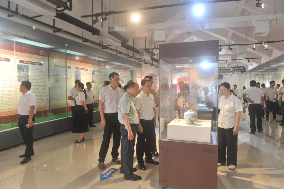 圖為干部職工駐足觀看實物展品