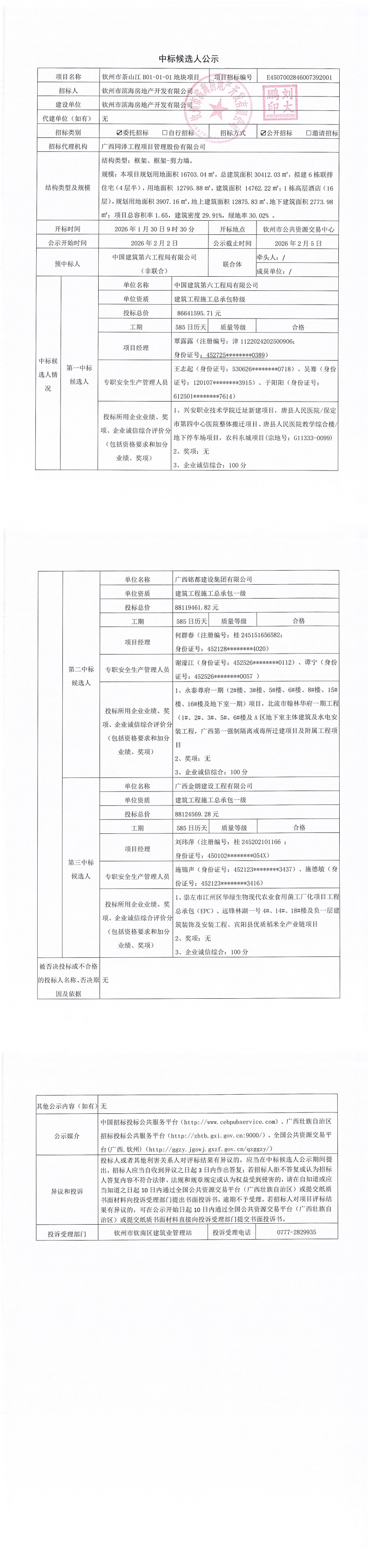 欽州市茶山江B01-01-01地塊項(xiàng)目中標(biāo)候選人公示