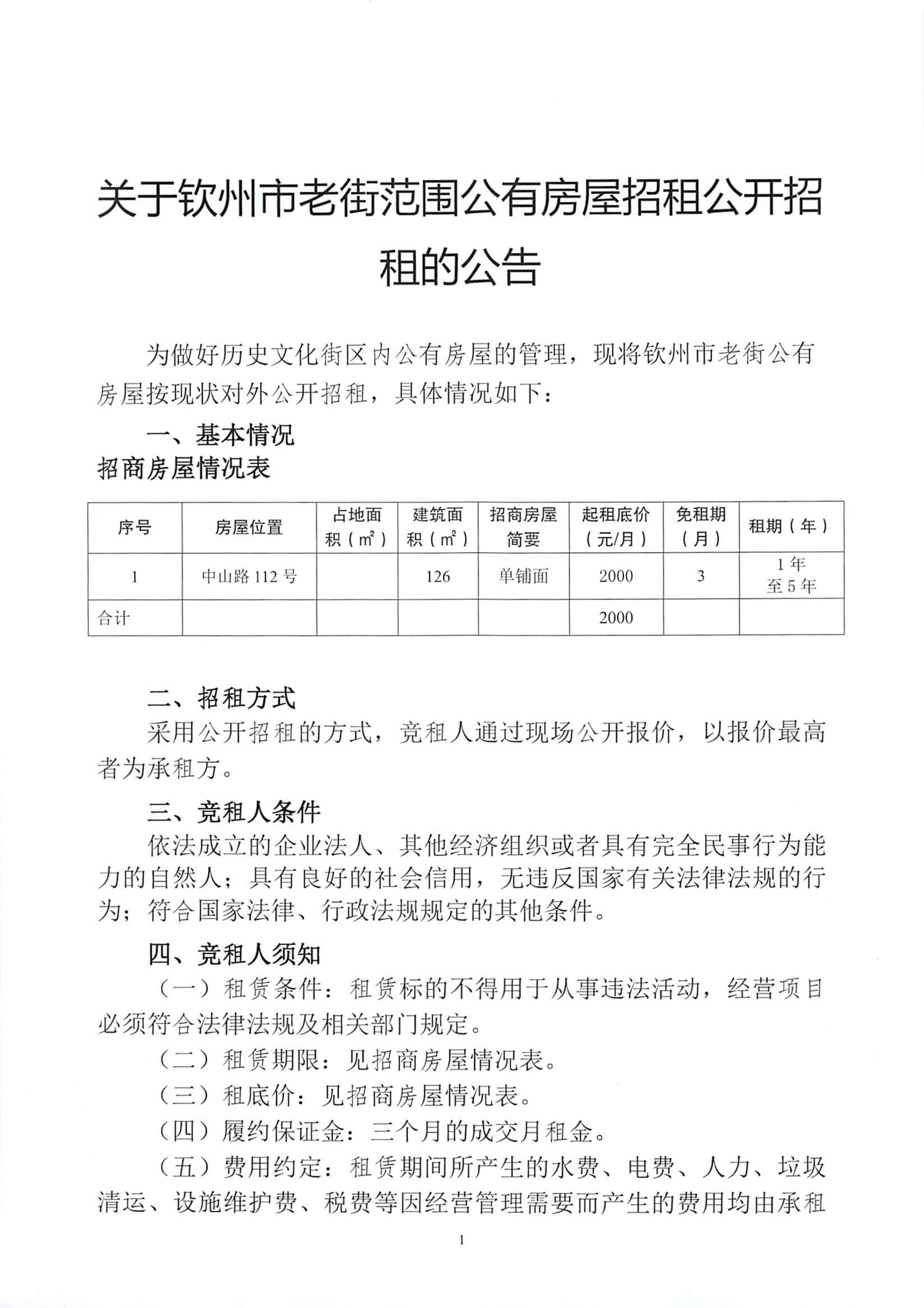 關于欽州市老街范圍公有房屋招租公開招租的公告