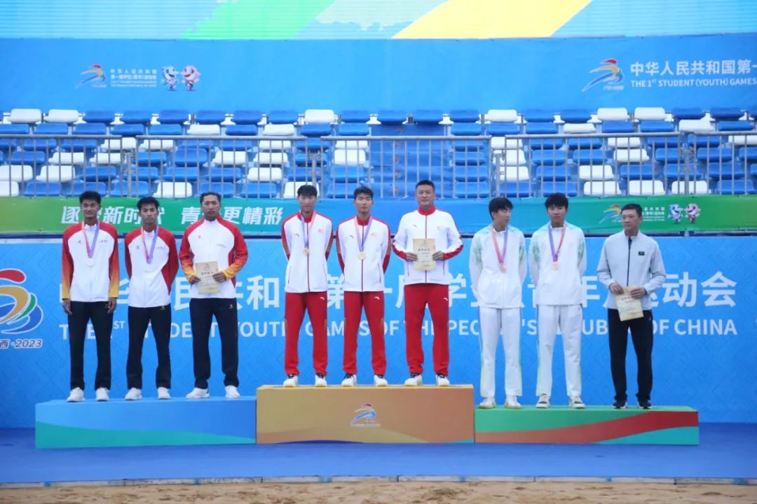 10月29日,第一屆全國(guó)學(xué)生(青年)運(yùn)動(dòng)會(huì)沙灘排球(公開組)決賽在欽州茅尾海沙灘排球訓(xùn)練基地舉行,南京市一隊(duì)的周勇吉/徐棕琪憑借出色發(fā)揮,以2:0戰(zhàn)勝黃浦區(qū)一隊(duì)的白鵬碩/呂志輝,奪得冠軍。