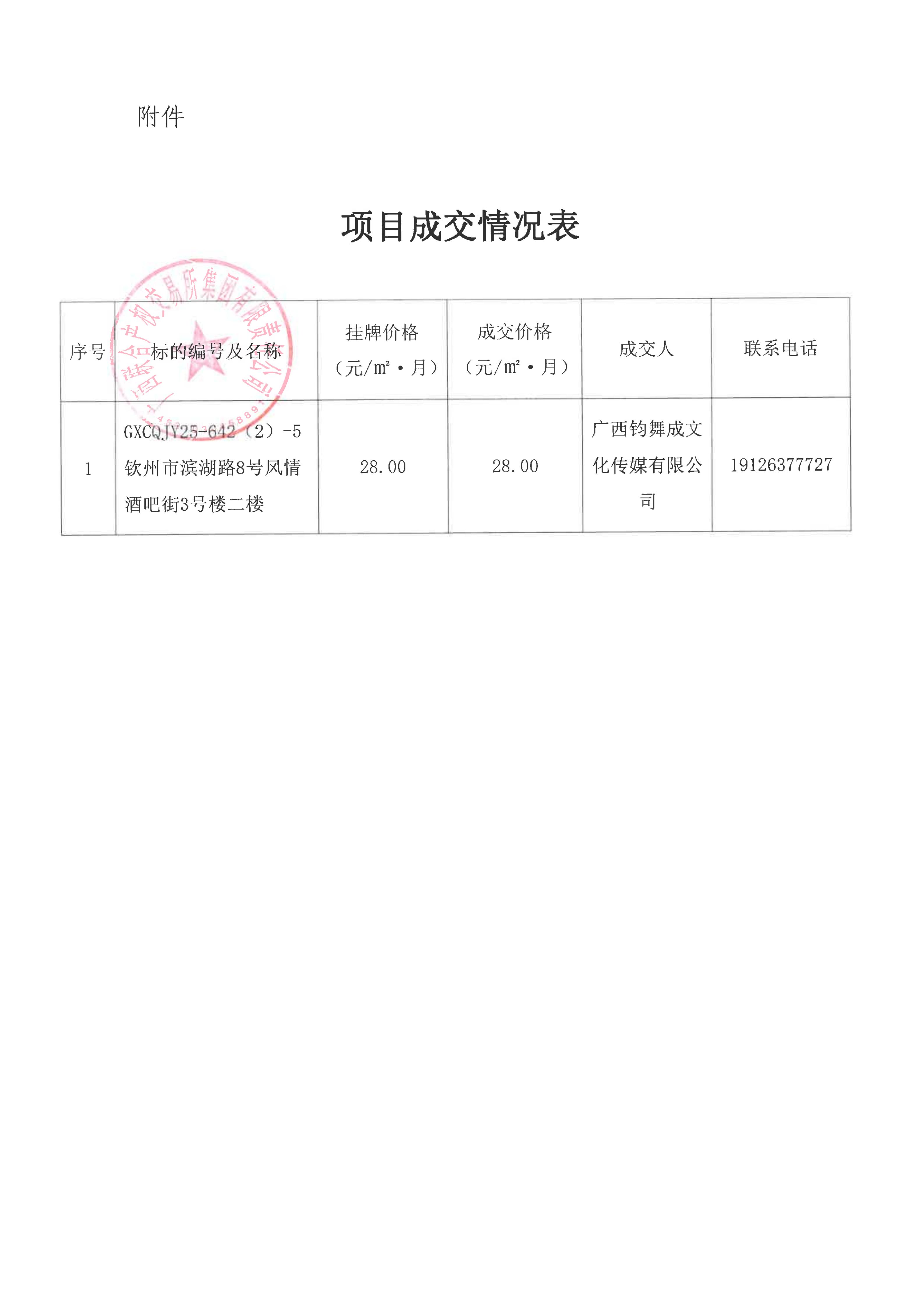 關(guān)于欽州市濱湖路8號風(fēng)情酒吧街(蘭亭街)房屋公開招租項目成交情況的函(第四期)