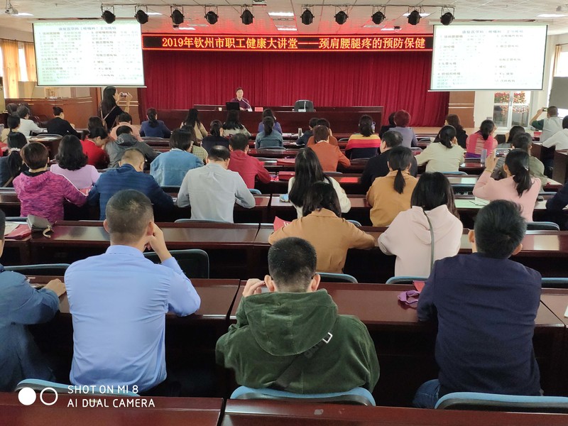 2019年11月14日上午,我集團公司組織職工參加市總工會、市健康教育中心舉辦的“頸肩腰腿疼的預(yù)防保健”的職工健康知識公益講座,講座由欽州市中醫(yī)醫(yī)院康復(fù)醫(yī)學(xué)科主任、醫(yī)學(xué)博士、副主任醫(yī)師鐘志年主講。鐘主任通過視頻講解、現(xiàn)場示范,為大家傳授頸肩腰腿疼的預(yù)防保健知識,全體參加人員踴躍參與預(yù)防保健鍛煉動作的互動。
