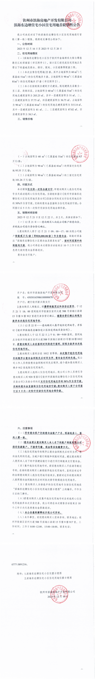 欽州市濱海房地產(chǎn)開(kāi)發(fā)有限公司濱海東邊塘住宅小區(qū)住宅用地首輪銷(xiāo)售公告